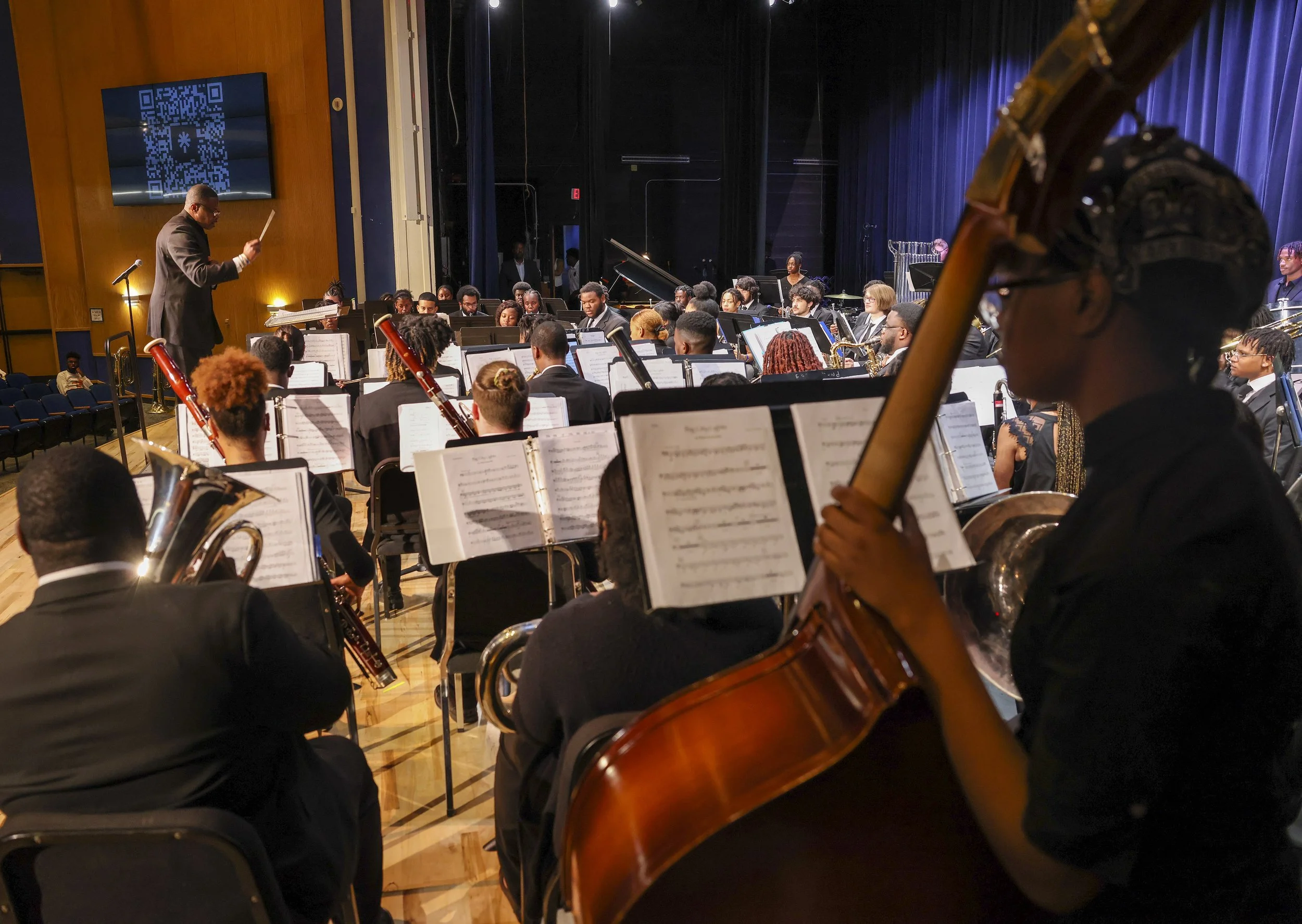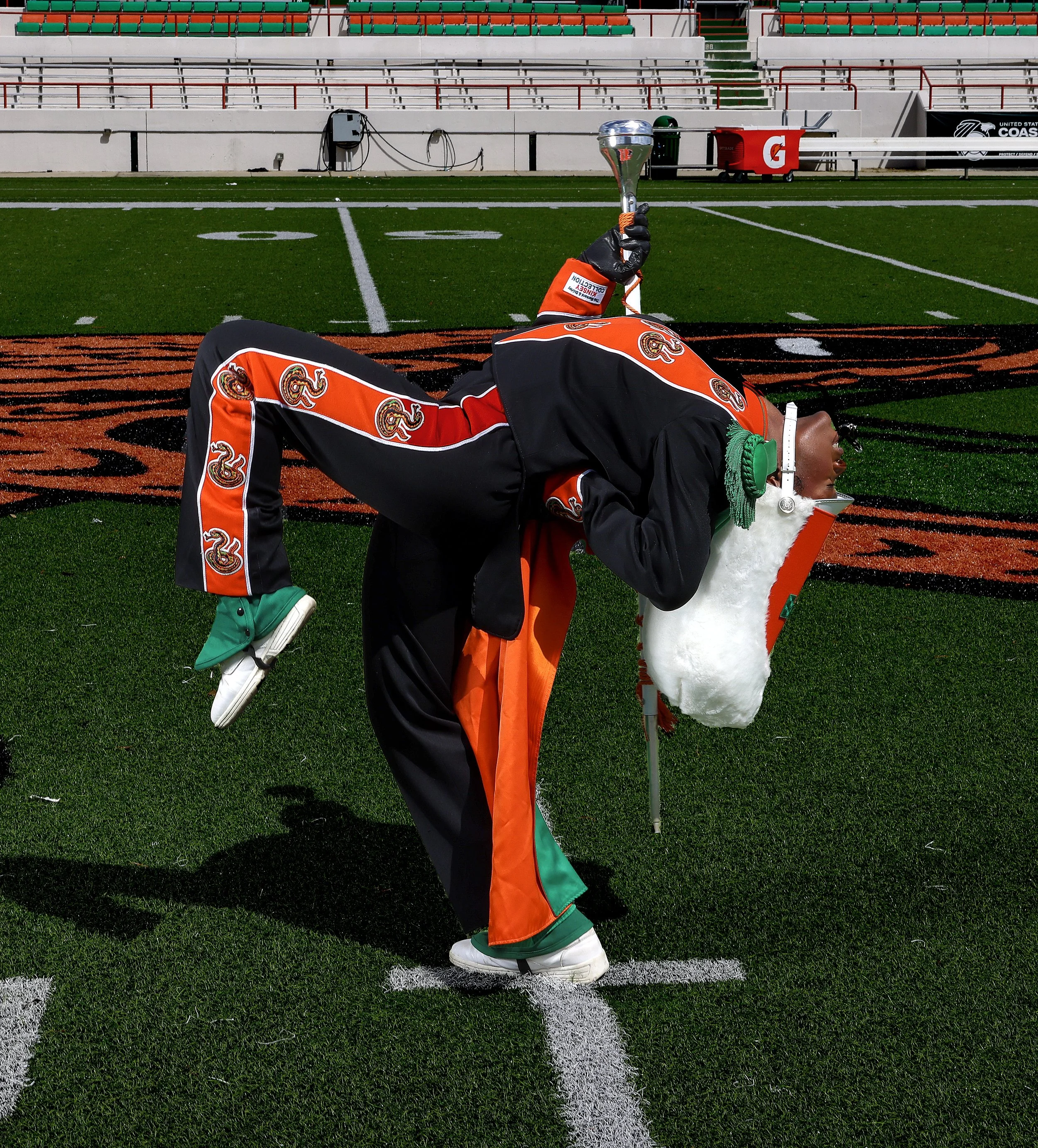 The Florida A&M Marching 100 rehearse for an upcoming performance in CA